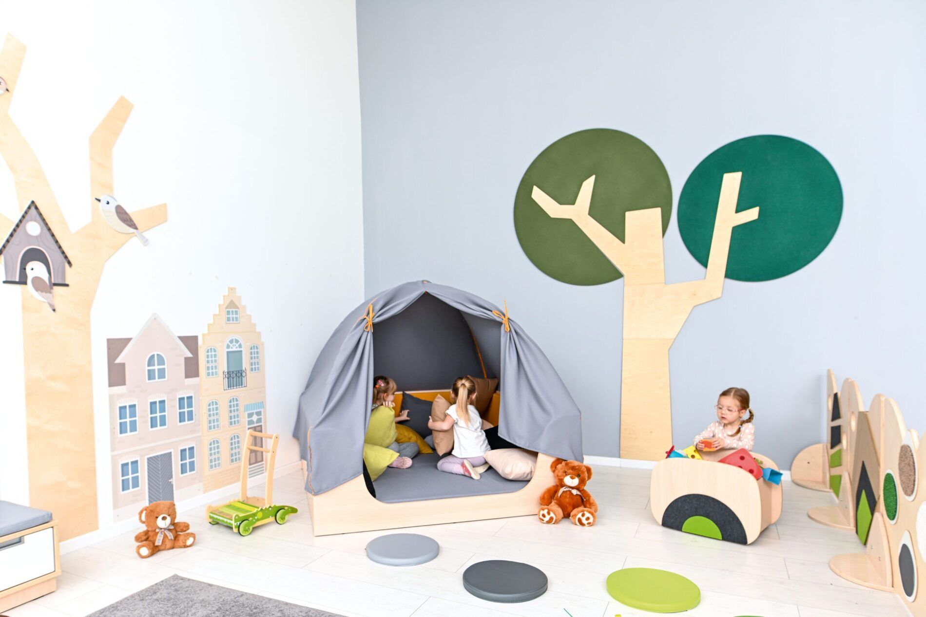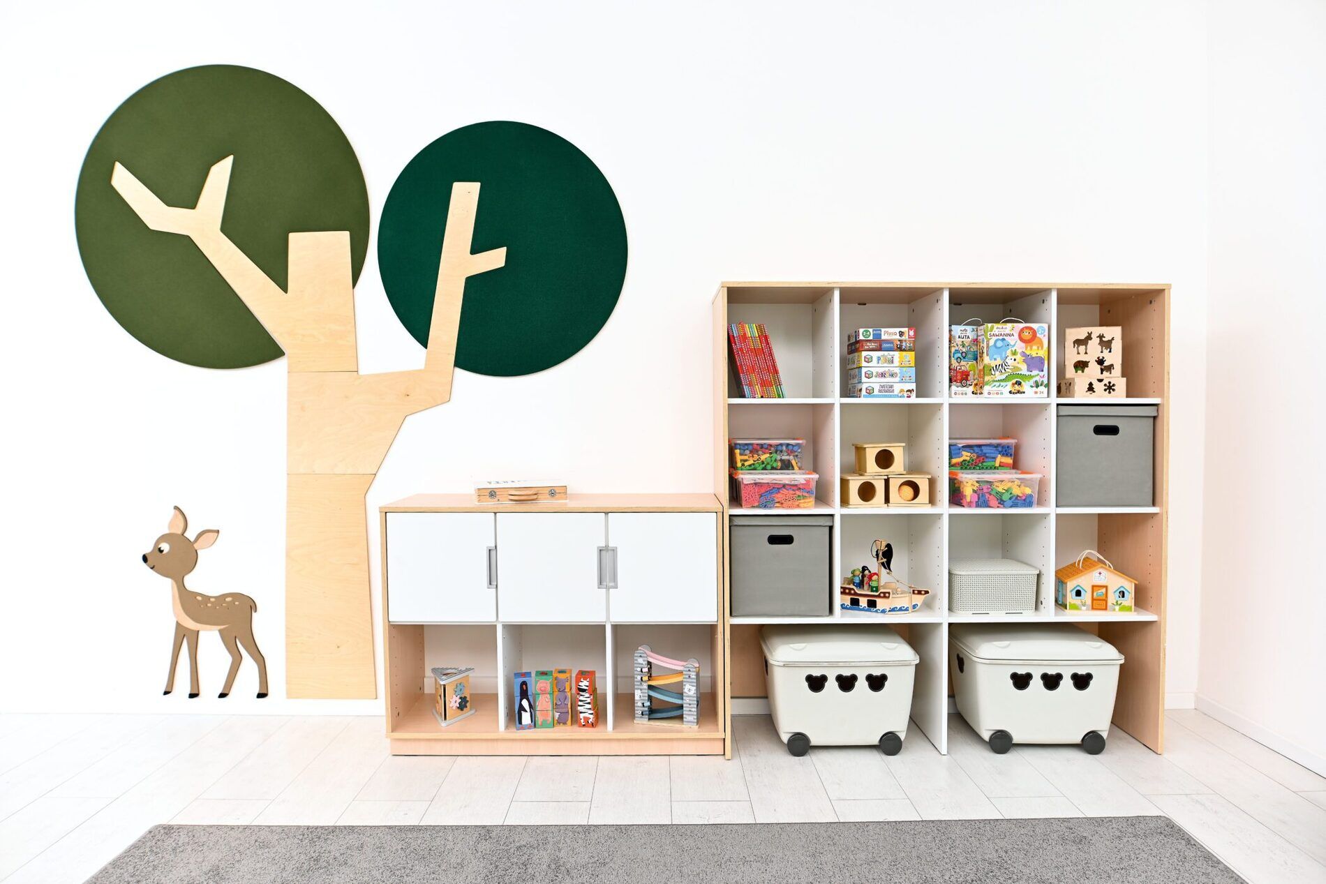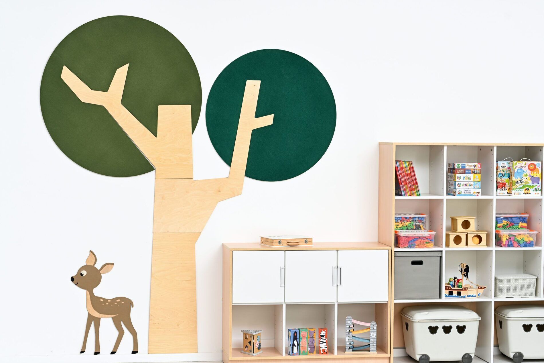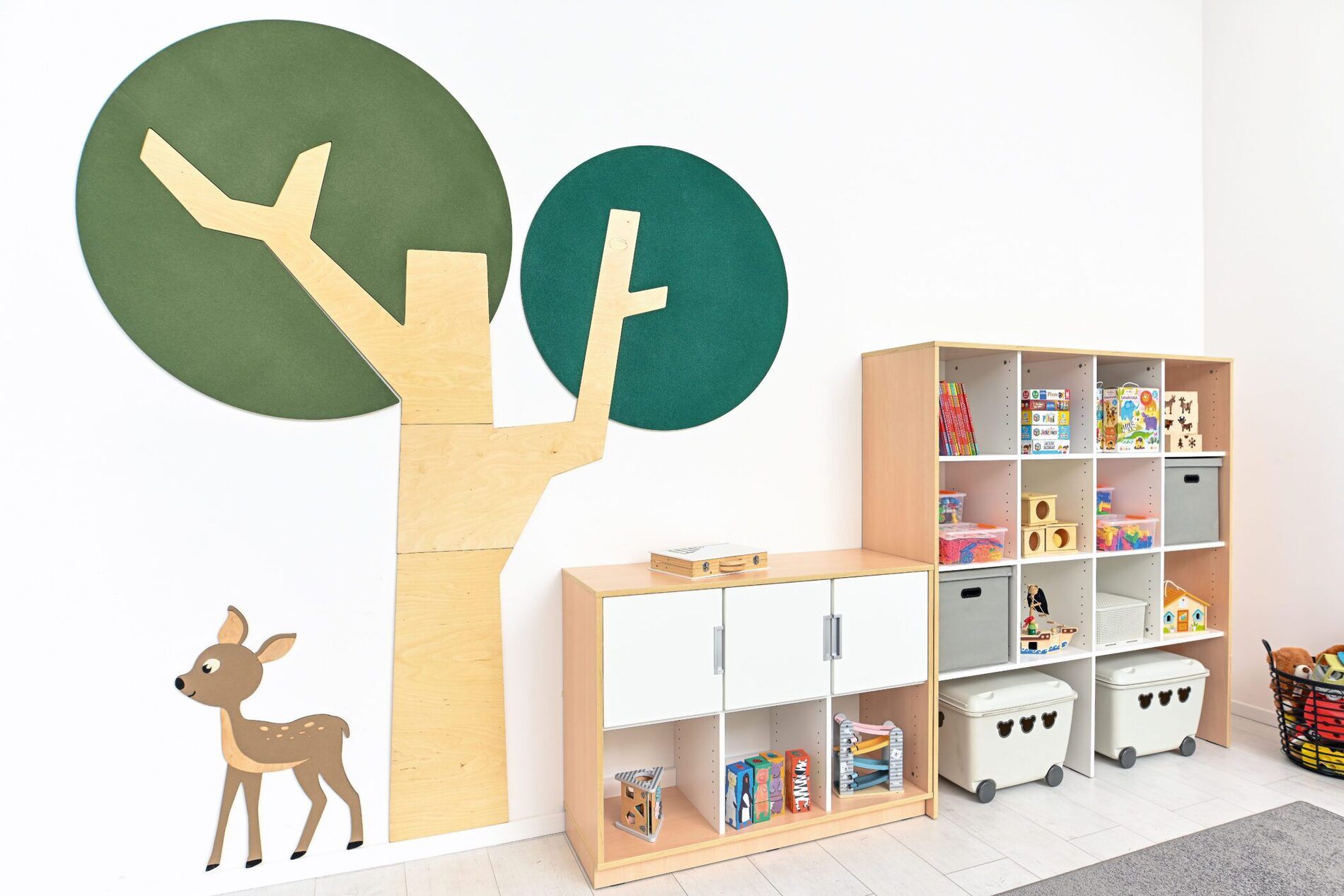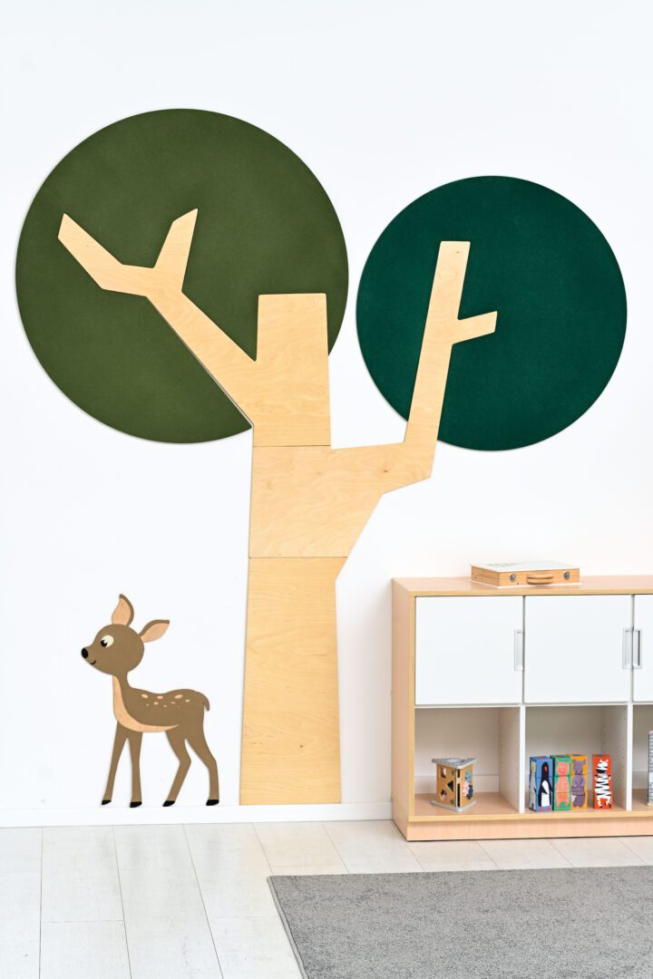 Deze wanddecoratie is perfect voor kinderdagverblijven, kleuterscholen, wachtkamers en pediatrische kantoren. De ronde zijn Boomkronen gemaakt van gerecycled PET-materiaal.