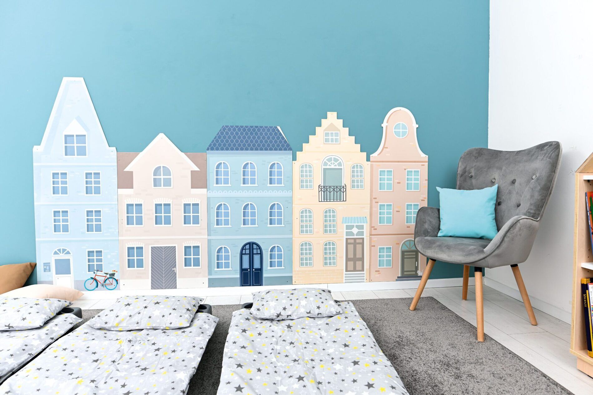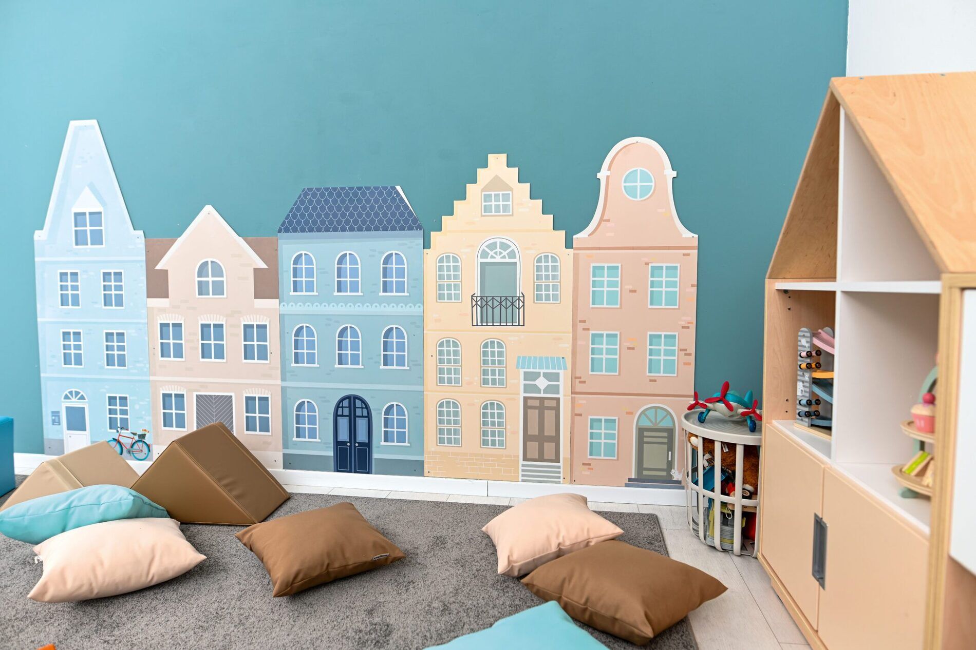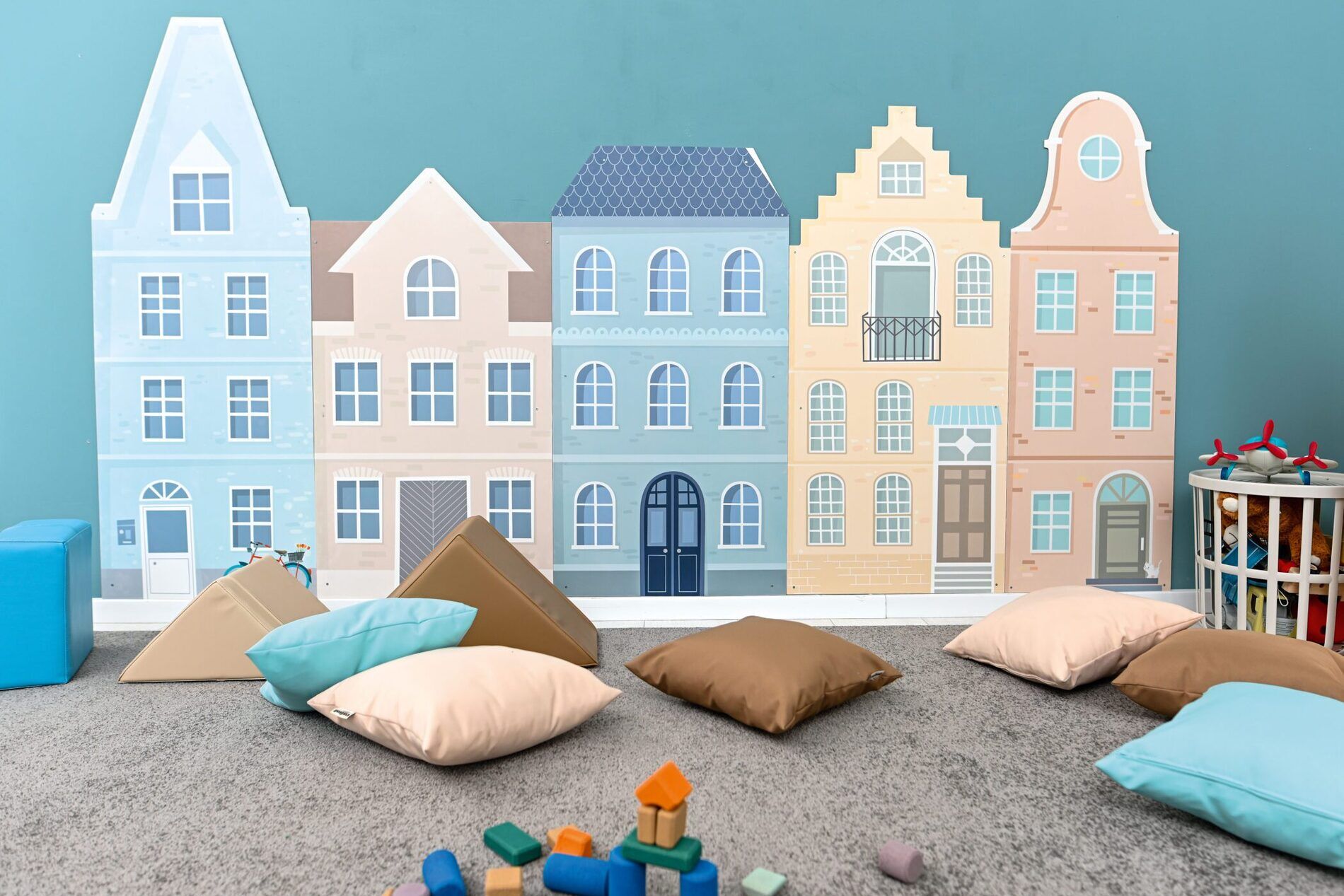 Wanddecoratie die ideaal is voor Kinderdagverblijven, wachtkamers en Zorginstellingen. Ze geven de ruimte een zeer aangename sfeer. En met onder andere een Oer-Hollands herenhuis met Trapgevel.