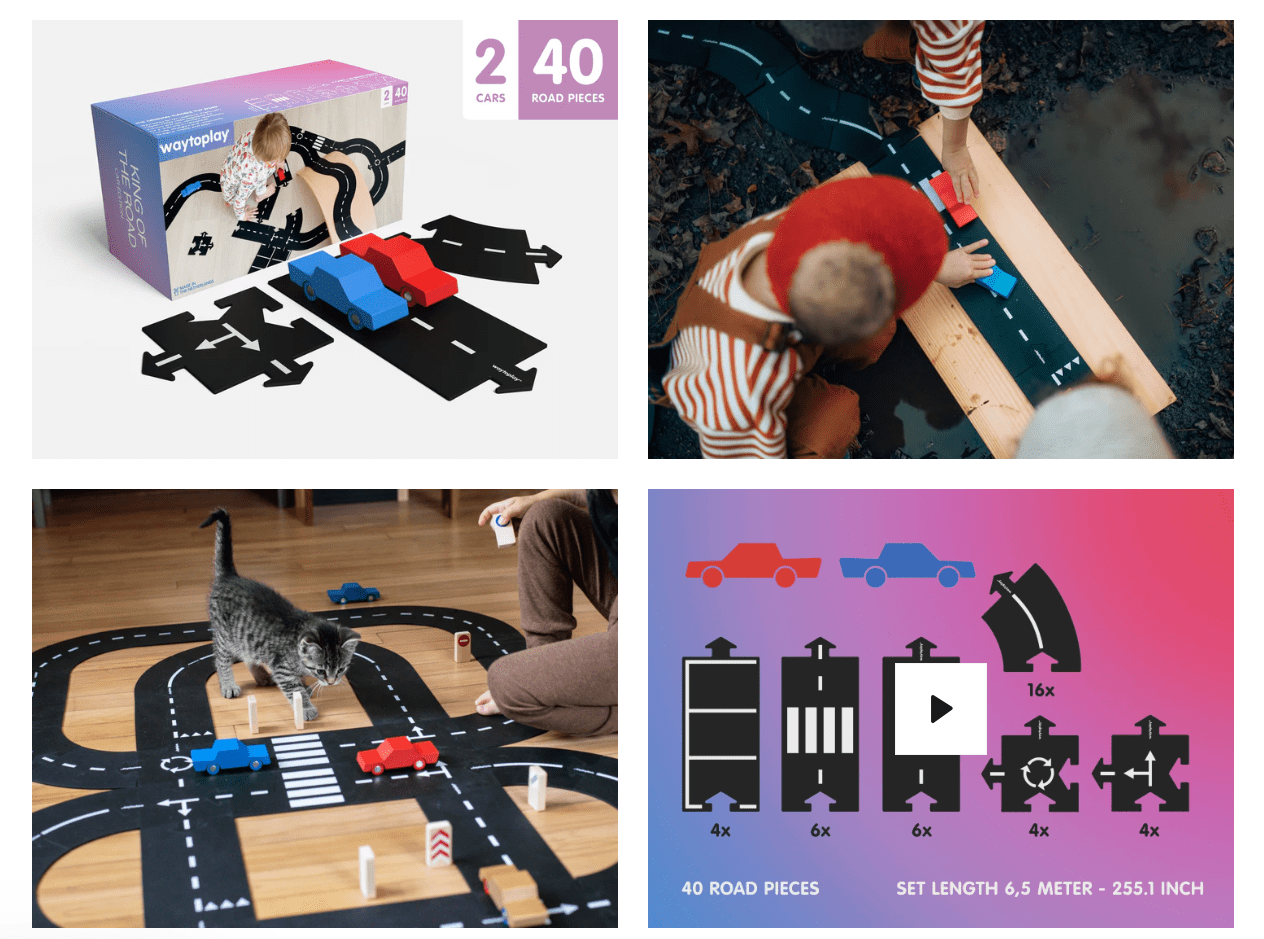 De set inclusief auto's is een variant op de gewone King of the Road-set. Hiermee heb je alles in één.