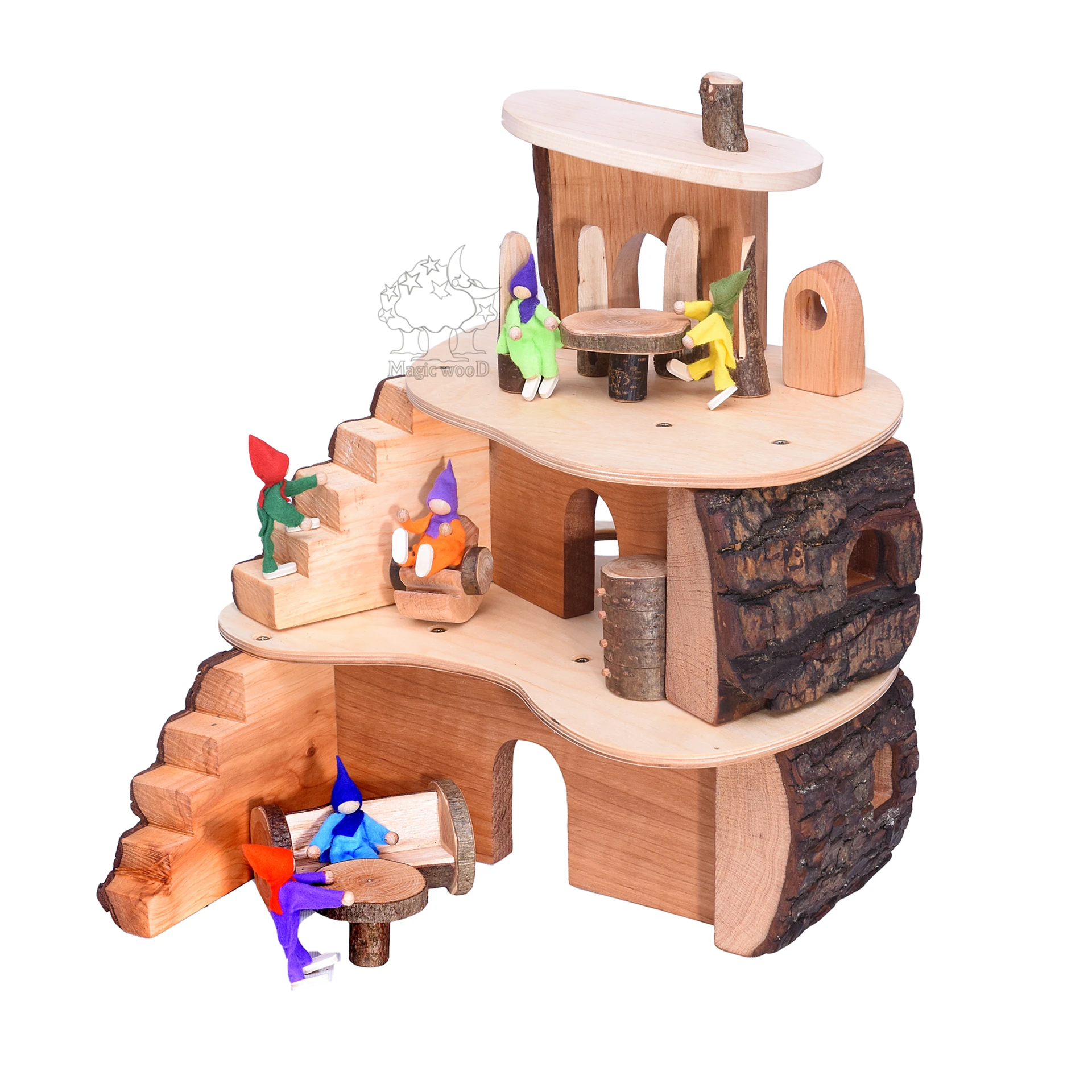 Deze boomhut kan perfect worden geïntegreerd in de structuren die de kinderen met de boomblokken zelf maken. Hier is een nieuwe kleine wereld. Met kleine buigpoppen (niet inbegrepen), is het houten huis gevuld met leven en inspireert kinderen tot prachtige verhalen.