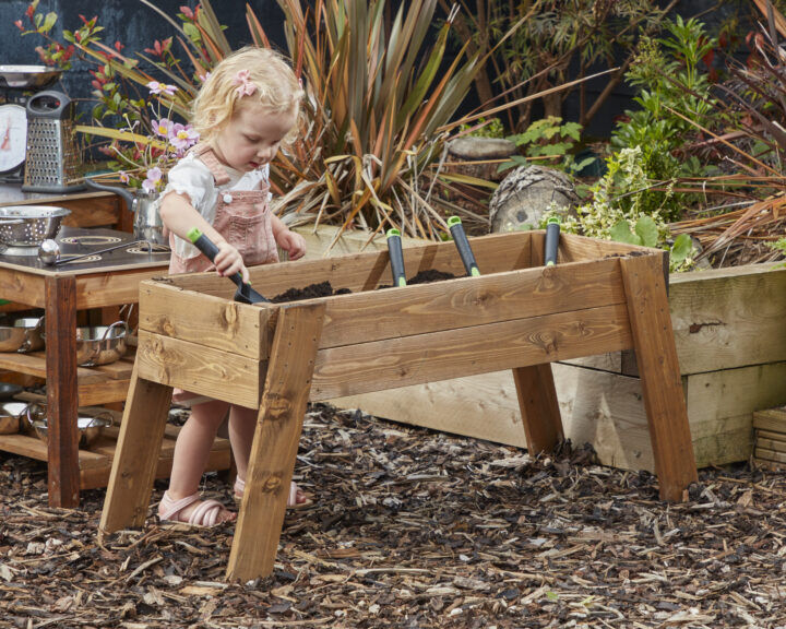 Laat kleine tuiniers en chef-koks hun creativiteit de vrije loop met deze zandbak of plantenbak! Deze veelzijdige plantenbak is perfect voor het kweken van kruiden en groenten of als uitbreiding van de modderkeuken, zodat kinderen direct toegang hebben tot ‘verse’ ingrediënten.